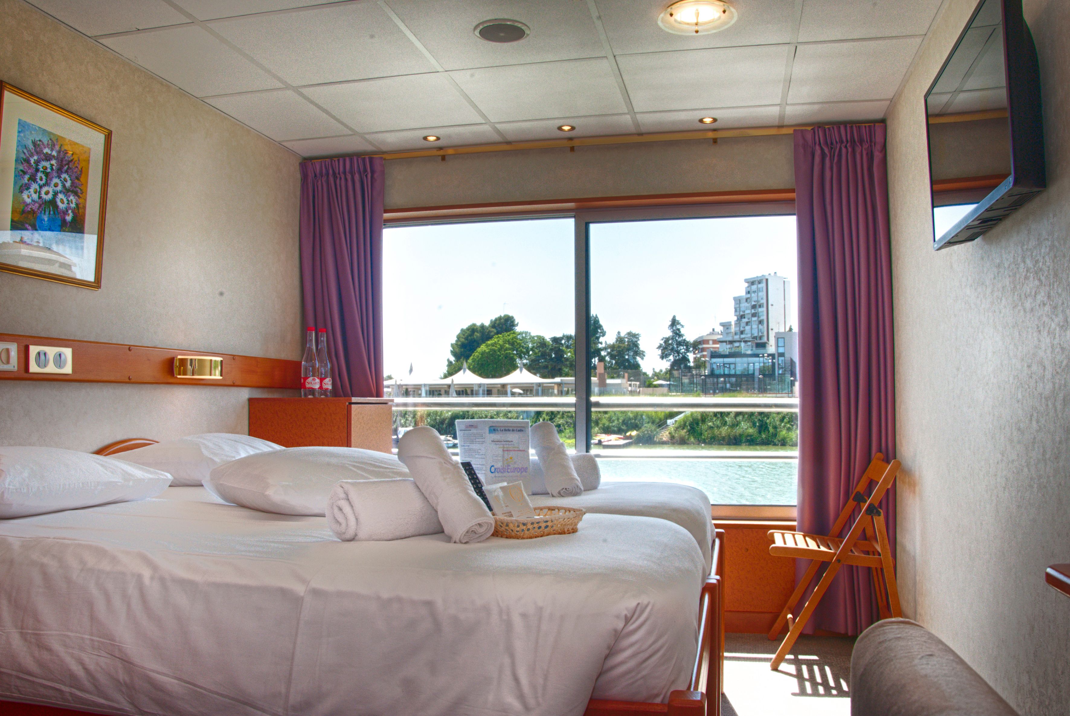 Upper Deck Outside Cabins – Twin/double air-conditioned cabins with a large floor to ceiling window, 13.5m² in size. Please call for upgrade supplement.