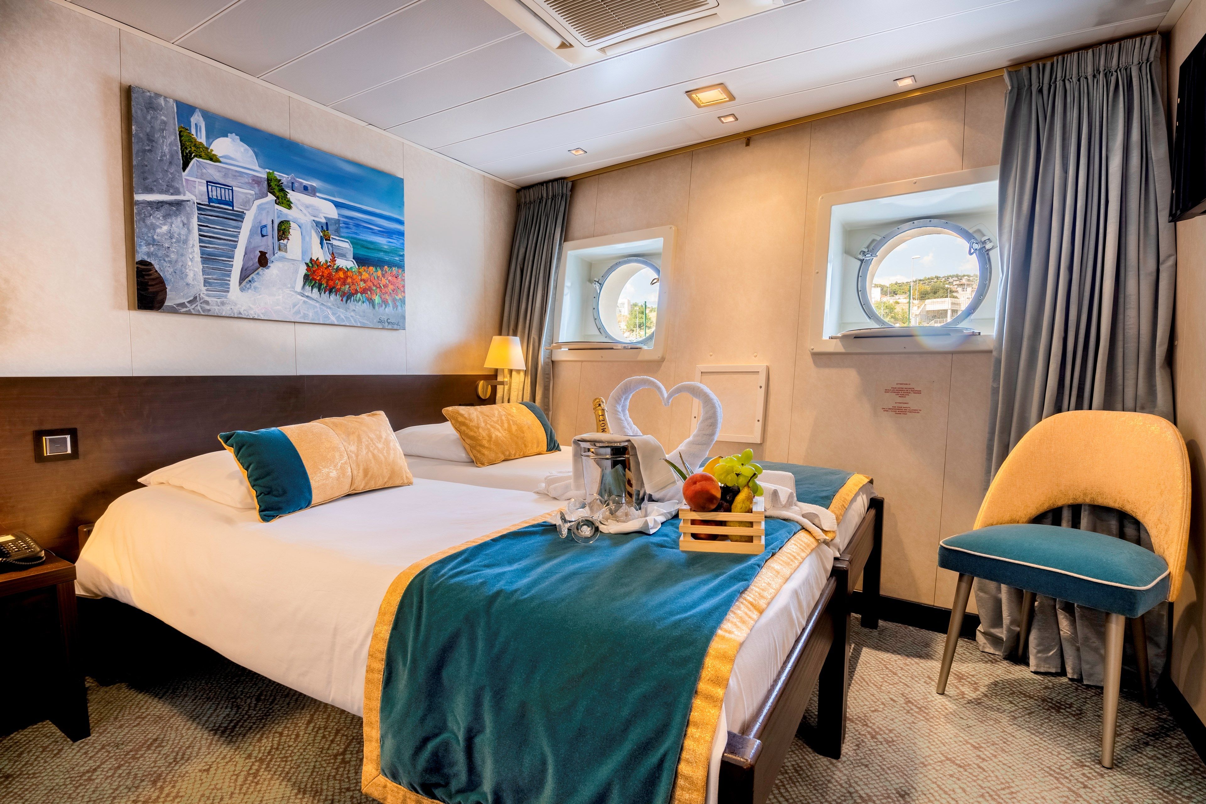 Lower Deck Outside Cabins – Twin/double air-conditioned cabin with porthole windows, 12m² in size.